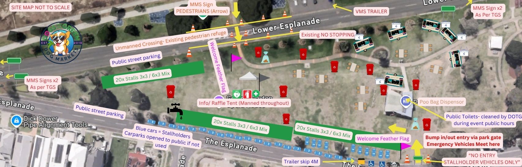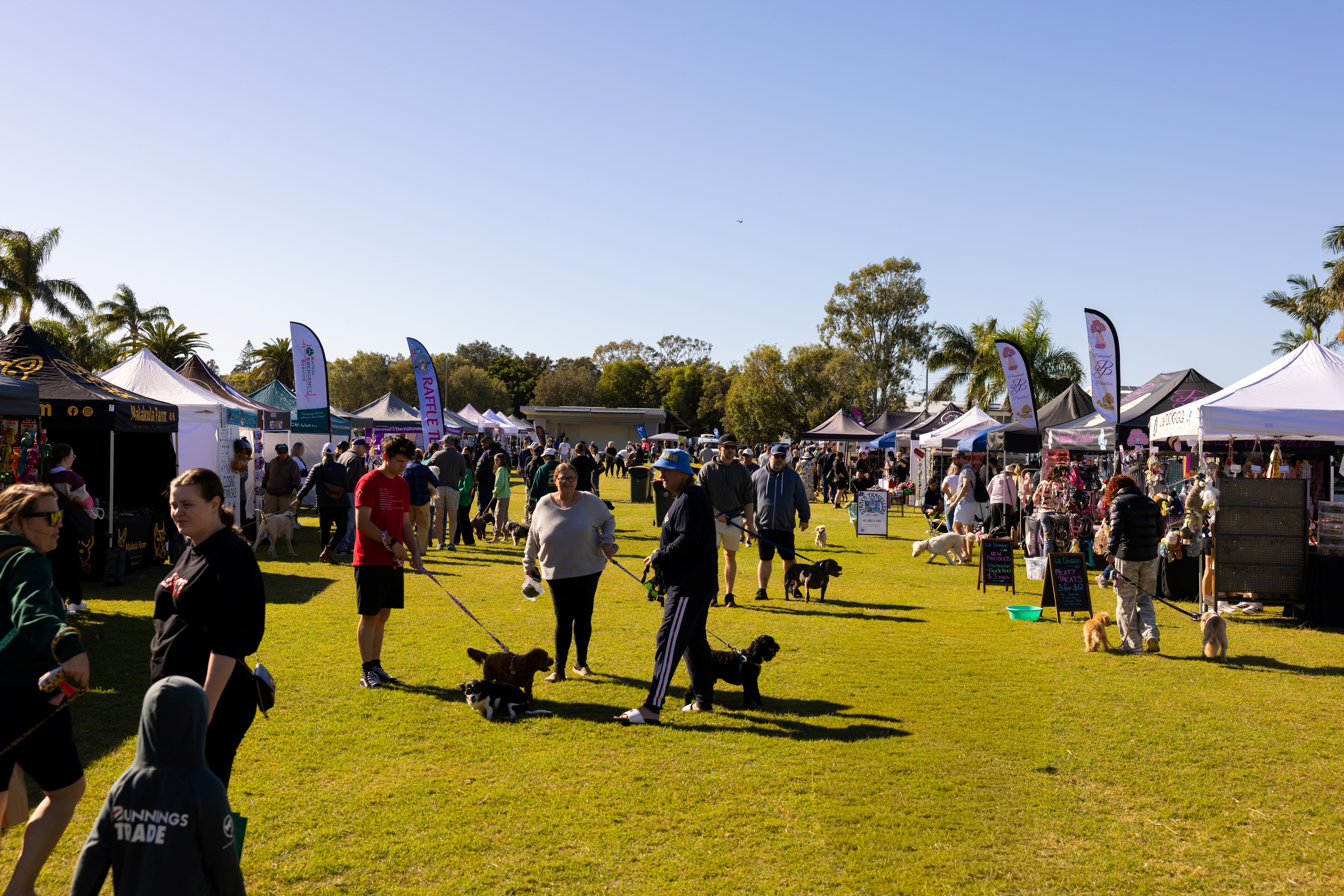 Join us at Dogs on the Green markets in Brisbane! 28 March 2026 and 20 June 2026 Located at the beautiful waterfront George Clayton Park in Manly. Free entry, dogs on leads welcomed. Public hours from 0830 to 2PM, bump in from 6am (quiet time 6 to 7am) Come and meet heaps of doggie parents and walkers use the beautiful Esplanade walkway every weekend. There is a busy Kids playground next door, nearby beach/water access (high tide is later in the day towards lunchtime) and plenty of cafes in the area. Ample free street parking in nearby streets is available for helpers with 1x designated space per stall for stallholders. Weights required - no pegs into grass. Vendors can park on the street a couple of meters from their stall sites as per the site map. Please contact us if you have any questions :) Note that bump in instructions/ site manual will be sent out closer to the date. Powered sites will be very limited. Food truck bookings welcomed- first in, first served! Site power supplied but please byo genset as backup.