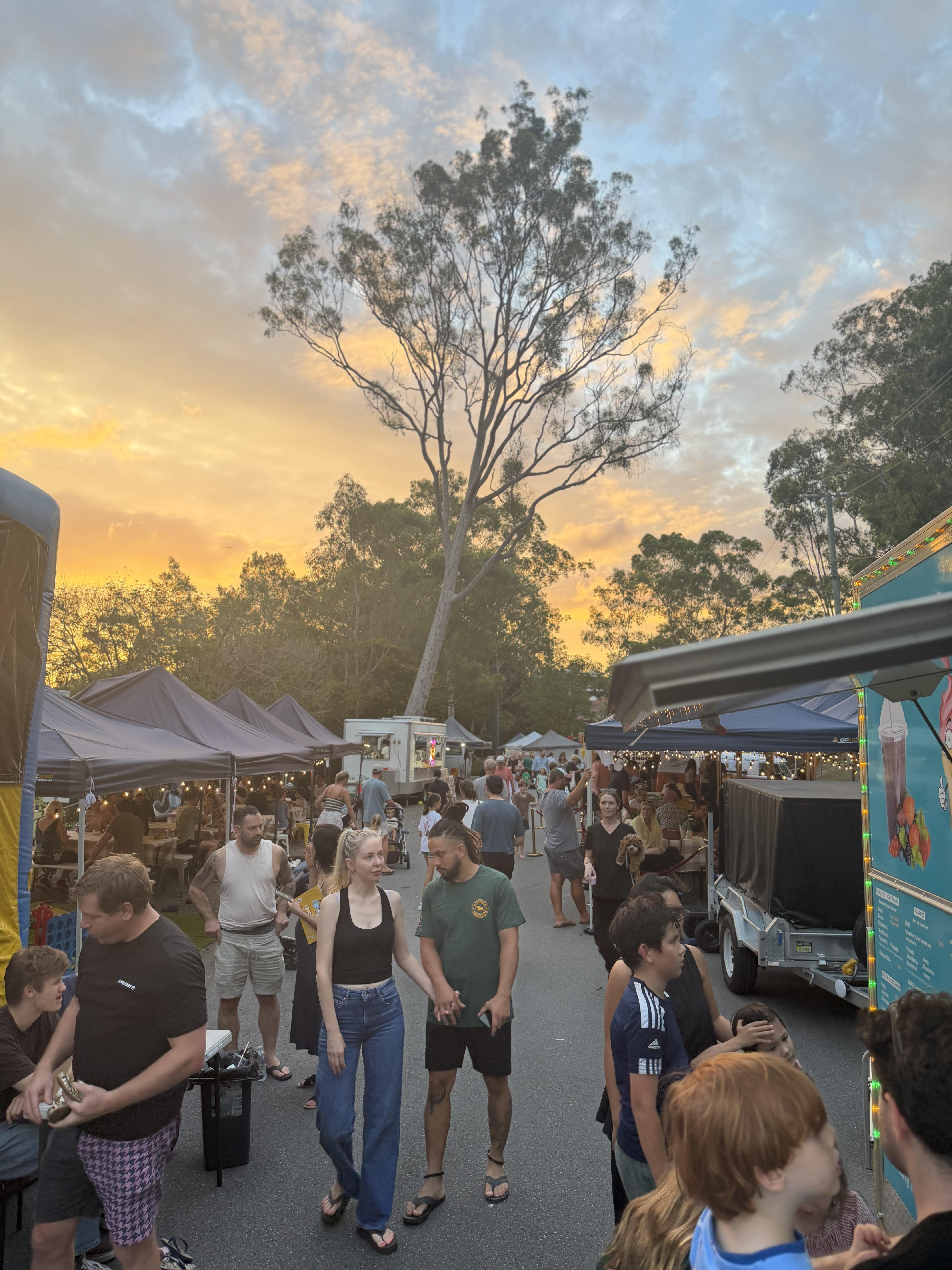 Fridays at the Bardon Markets is a laid back evening experience designed for locals to unwind at the end of the week. Set in the heart of Bardon, it’s a place to gather with friends and family, enjoy great food and drinks, listen to live music, and let the kids run free in the park as the sun goes down. Whether you’re popping down after work, meeting friends for dinner, or bringing the whole family along to use one of our picnic rugs, Fridays is about slowing things down and enjoying your neighbourhood.