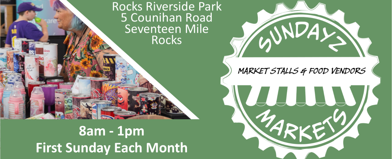 Sundayz Market operates from Rocks Riverside Park, Seventeen Mile Rocks on the 1st Sunday of each month. We have a great variety of stalls who attend and are always looking for new interesting vendors to join us. We offer a limited number of site where you can have you car with you and are a market that is hugely supported by the community.